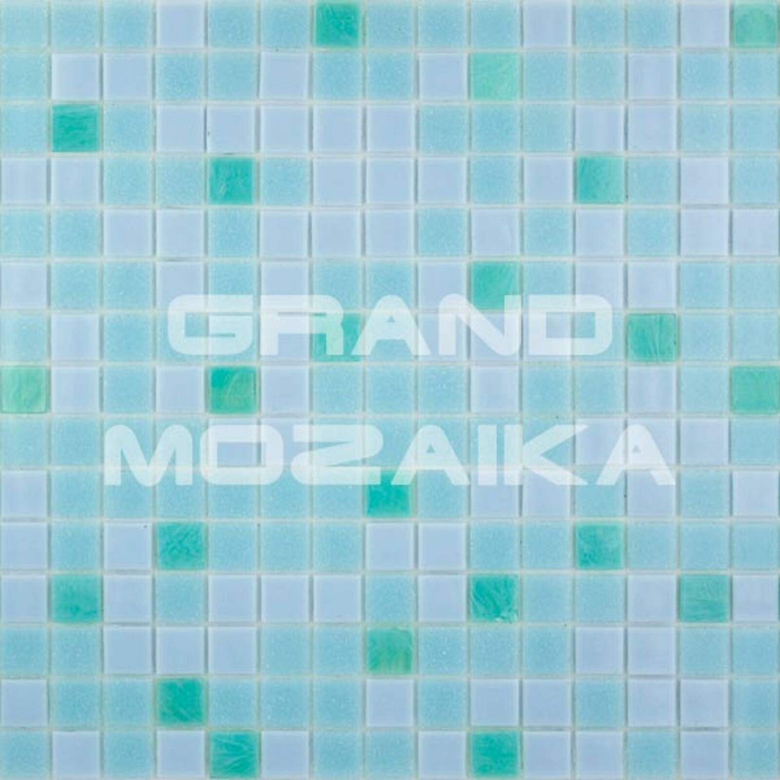 Мозаика для бассейнов серии Смеси из кусочков размером 20х20 см. Полотно 327х327 легко в монтаже и не требует особых навыков. Основной цвет полотна иссиня зеленый с добавлением мозаик с необычным размытым рисунком того же оттенка. Такое полотно украсит любой бассейн и подойдет как для внутренней его отделки так и для внешней.