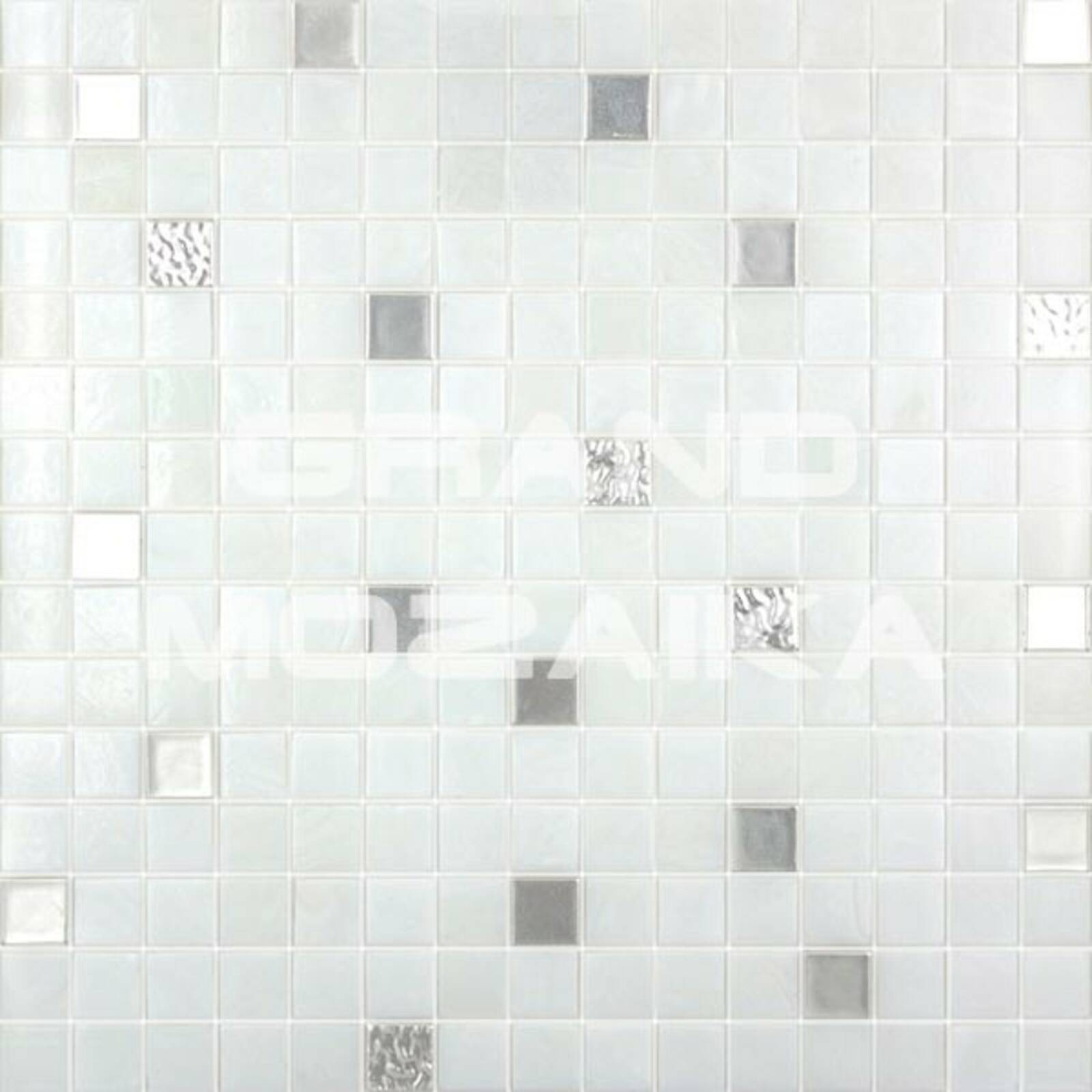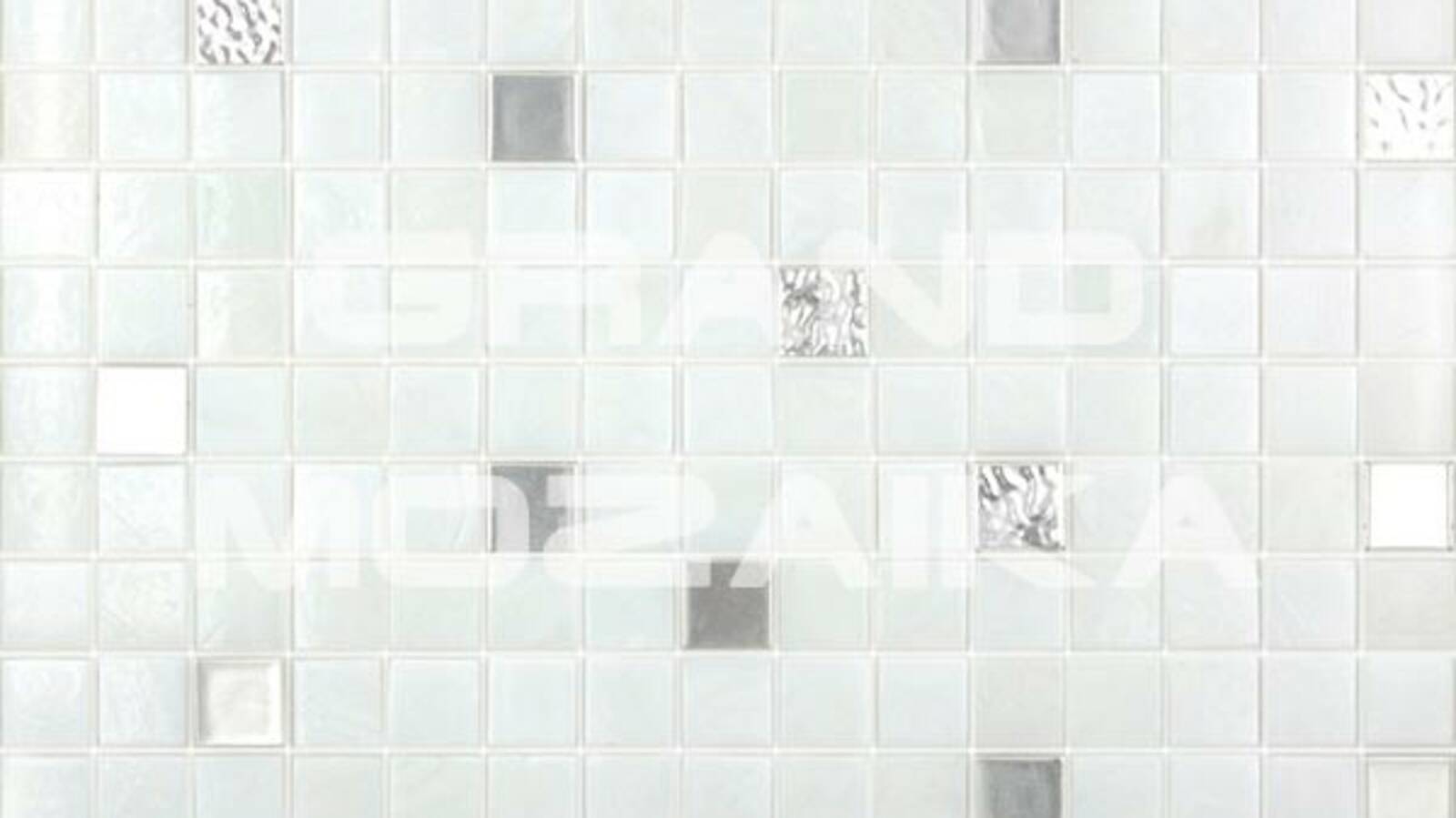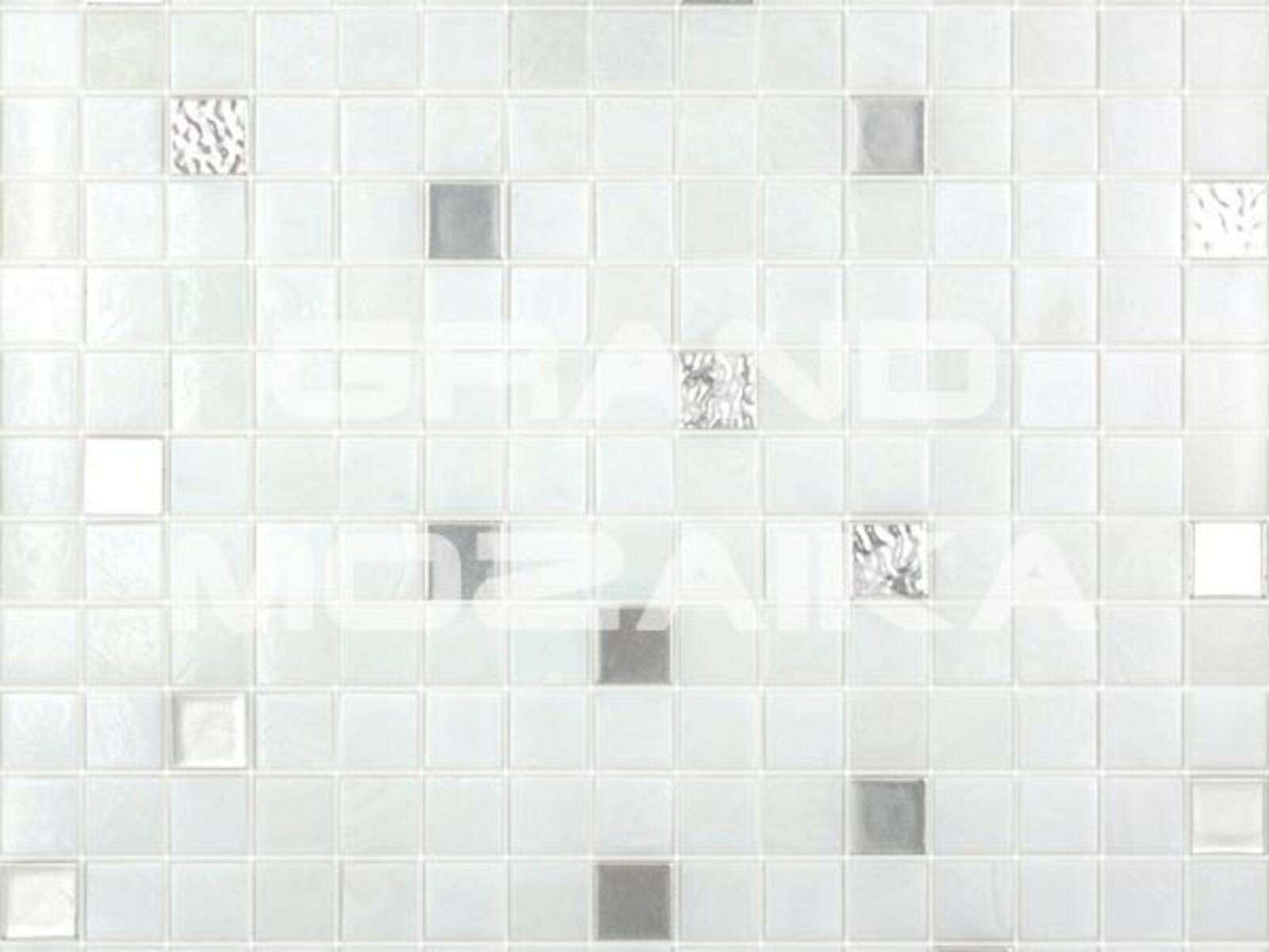 Мозаика для бассейнов серии Смеси состоит из маленьких кусочков размером 20х20 мм. Полотно выполнено из глянцевых мозаик белого цвета. Хаотическое вкрапление серебряных мозаик придает ему роскоши. Полотно размером 327х327 удобно в монтаже и не требует особых навыков.Такая мозаика будет необычно смотреться в интерьере бассейна в стиле модерн.