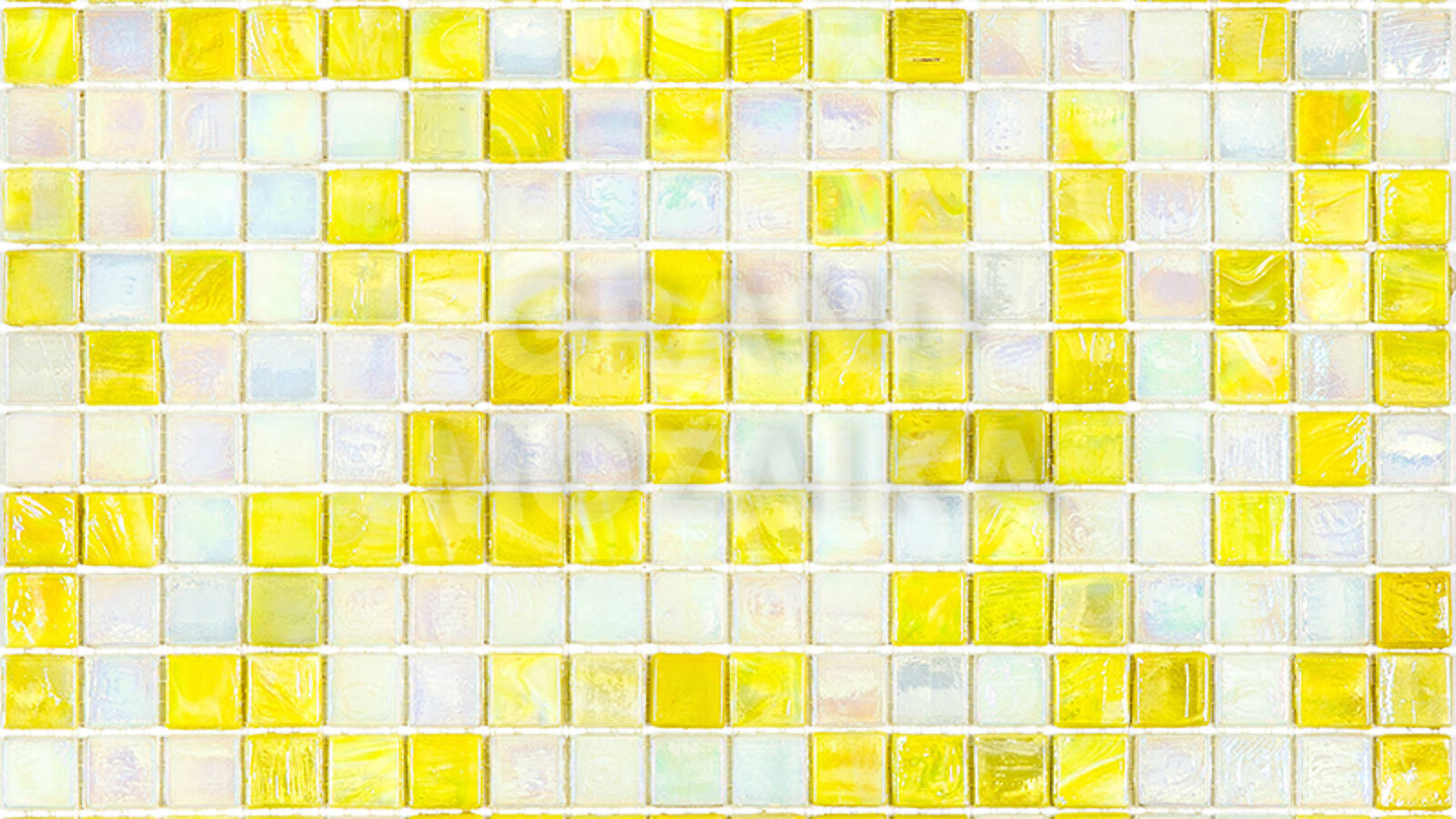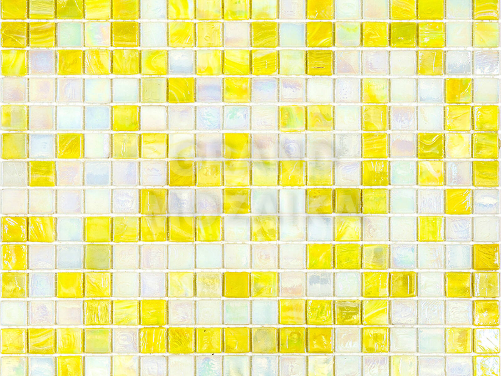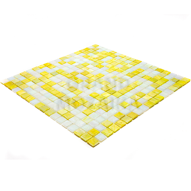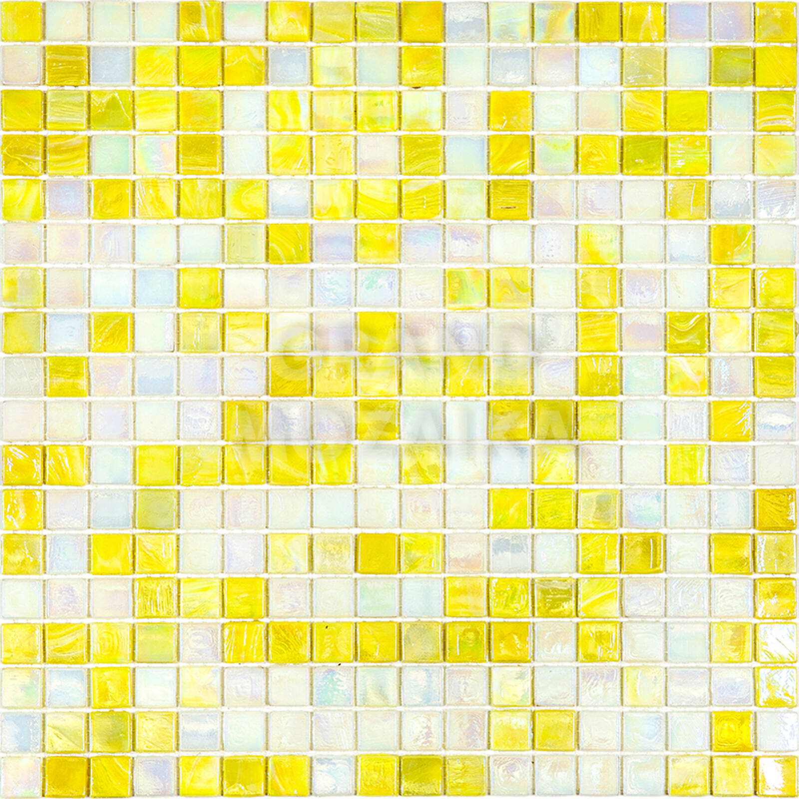 Стеклянная мозаика, серия Смеси, цвет: белый, желтый, размер чипа (мм): 15x15