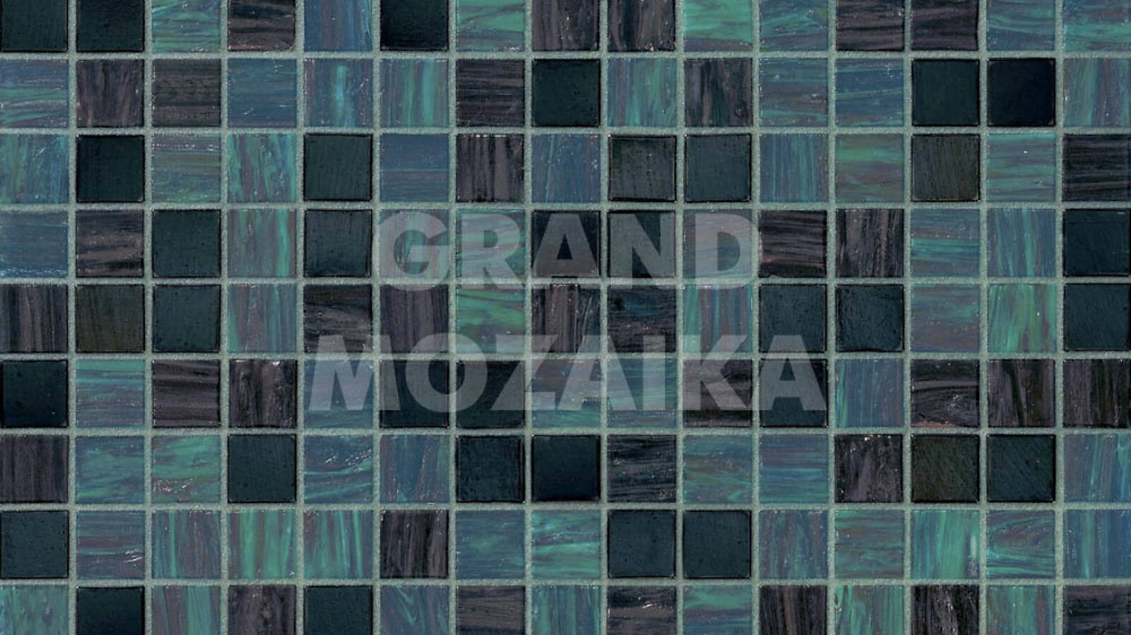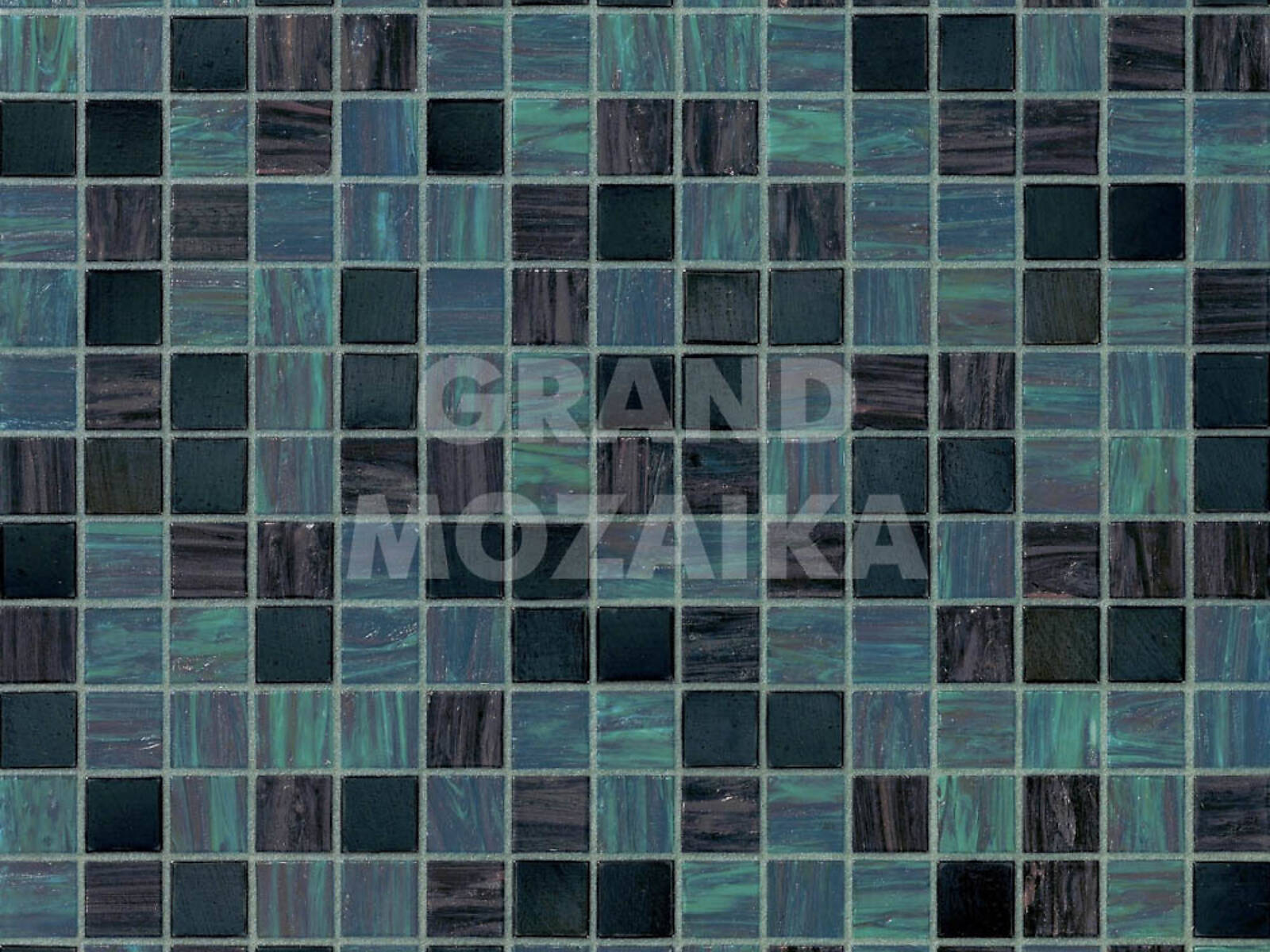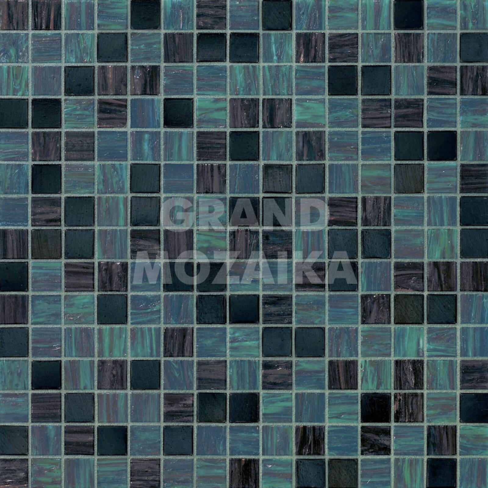 Стеклянная мозаика (Ilaria), серия Blends, цвет: бирюзовый, черный, размер чипа (мм): 20x20