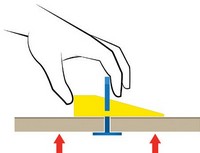 3. Вставьте клин между плитками и верхней частью зажима. Зафиксируйте клин так, чтобы его нижняя часть максимально плотно прилегала к плиткам, добившись выравнивания плиток в плоскости.