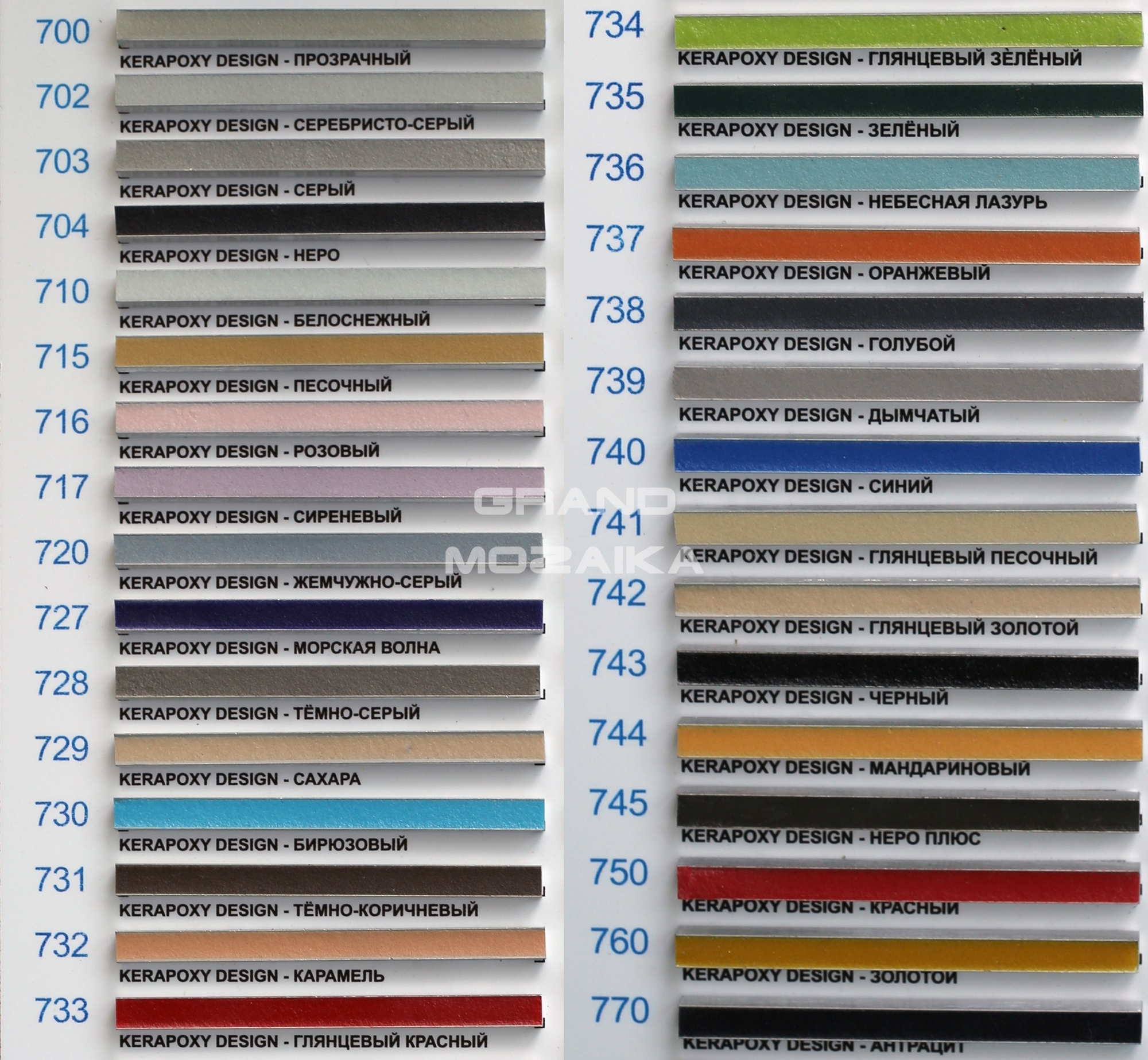 Двухкомпонентный декоративный кислотостойкий эпоксидный шовный заполнитель (представлен в 8 различных цветах), идеально подходит для стеклянной мозаики, может применяться в качестве клея.